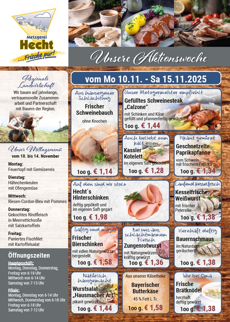frisch eingetroffenwöchentliche Speisekarte und Angebote KontaktWir freuen uns auf SieEmailservice@metzgerei-hecht.deTelefonHauptgeschäft 09492 288AdresseBlossenbergweg 1 92331 Lupburg Name Telefon Email Adresse Nachricht Datenschutz Datenschutz Ich stimme zu, dass meine Angaben aus dem Kontaktformular zur Beantwortung meiner Anfrage erhoben und verarbeitet werden. Weitere Informationen: Datenschutzerklärung 14 + 13 = absenden
